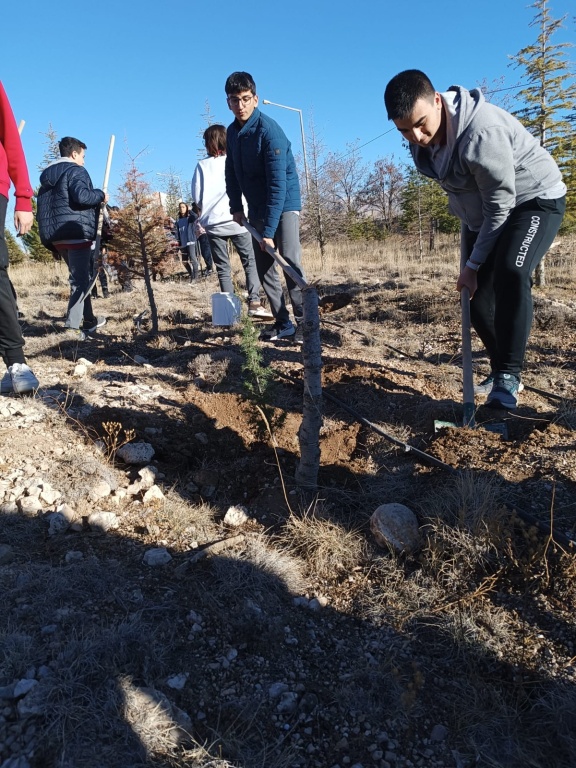 Eylül ayı etkinlikleri kapsamında Niğde Orman Müdürlüğü'nden alınan fidanlar okul bahçemizde toprakla buluşturuldu.